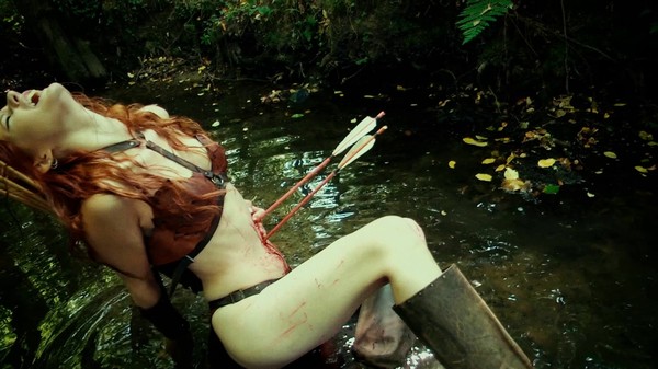 Keywords: amazons, topless, arrows, belly, back, leather, boots stripping, outdoor, water